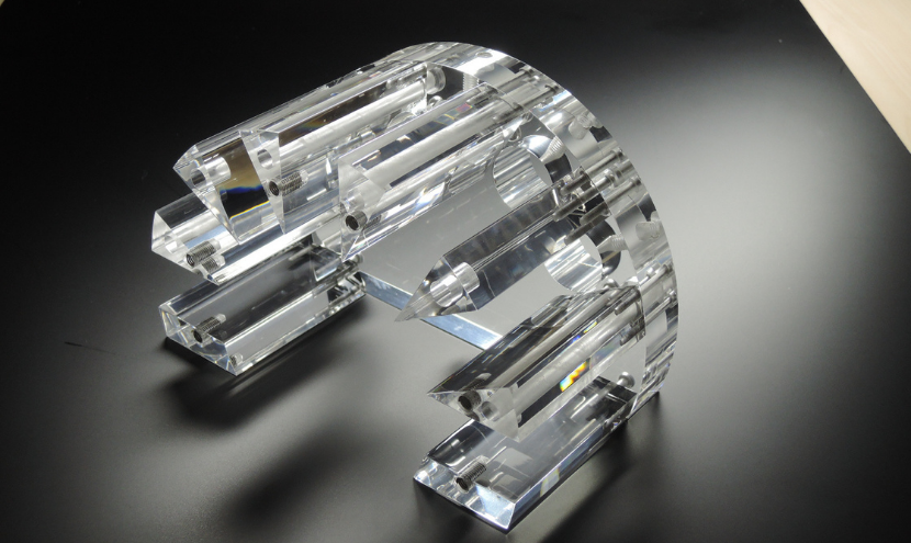 | ポイント | マシニング加工による複数面の加工あり。そのままの切削では切削面が曇るためミガキ仕上げを行い、特定の穴にヘリサートを挿入。 透明度が高く、耐候性や耐水性に優れるアクリルを使用。 |