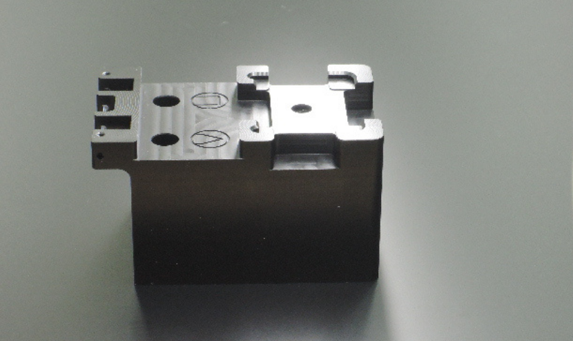 | ポイント | マシニング加工による複数面の加工あり。 機械的強度と耐熱性に優れたMCナイロンの、導電性を持たせたグレードを使用。 |